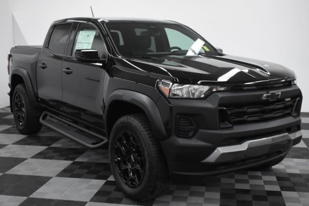 Black 2026 Chevrolet Colorado 4D Crew Cab Trail Boss 4WD 8-Speed Automatic 2.7L I4 Turbocharged DOHC 16V LEV3-ULEV50 310hp 4WD, 3.42 Rear Axle Ratio, 4-Spoke Wrapped Steering Wheel, 4-Way Manual Passenger Seat Adjuster, 4-Wheel Disc Brakes, 6 Speakers, 6-Speaker Audio System Feature, 6-Way Manual Driver Seat Adjuster, 8-Way Power Driver Seat Adjuster, ABS brakes, Adaptive Cruise Control, Air Conditioning, Alloy wheels, AM/FM radio: SiriusXM with 360L, Apple CarPlay/Android Auto, Auto High-beam Headlights, Automatic Emergency Braking, Automatic temperature control, Brake assist, Chevy Safety Assist, Cloth Seat Trim, Compass, Delay-off headlights, Driver door bin, Driver vanity mirror, Dual front impact airbags, Dual front side impact airbags, Electronic Stability Control, Emergency communication system: OnStar, Evotex Seat Trim, Following Distance Indicator, Forward Collision Alert, Front anti-roll bar, Front Bucket Seats, Front Center Armrest, Front dual zone A/C, Front wheel independent suspension, HD Surround Vision, Heated door mirrors, Heated Steering Wheel, Illuminated entry, Low tire pressure warning, Navigation System, Occupant sensing airbag, Outside temperature display, Overhead airbag, Overhead console, Panic alarm, Passenger door bin, Passenger vanity mirror, Power door mirrors, Power Driver Lumbar Control Seat Adjuster, Power steering, Power windows, Preferred Equipment Group 0TR, Radio data system, Radio: 11.3" Diagonal Advanced Color LCD Display, Rear Pedestrian Alert, Rear reading lights, Rear step bumper, Rear window defroster, Remote keyless entry, Remote Vehicle Starter System, Security system, Speed control, Speed-sensing steering, Split folding rear seat, Steering Wheel Mounted Audio Controls, Steering wheel mounted audio controls, Tachometer, Technology Package, Tilt steering wheel, Traction control, Trail Boss Convenience Package II, Trip computer, Variably intermittent wipers, Wheels: 18" x 8.5" Black High Gloss Aluminum, Wheels: 20" x 9" High Gloss Black Aluminum, Wireless Phone Charging, Wireless Phone Projection, 4WD.