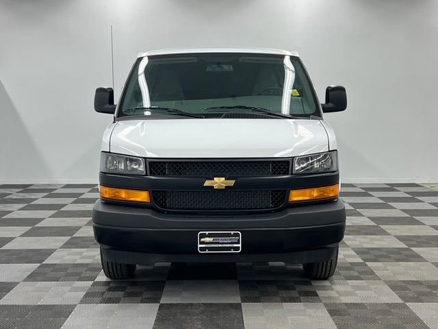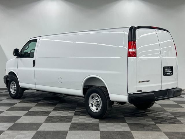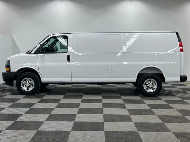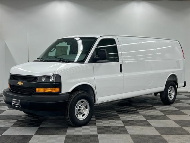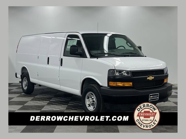 Summit White 2026 Chevrolet Express 2500 3D Extended Cargo Van Work Van Cargo RWD 8-Speed Automatic with Overdrive 4.3L V6 16 x 6.5 Steel Wheels, 2 Speakers, 3.42 Rear Axle Ratio, 4-Wheel Disc Brakes, ABS brakes, Air Conditioning, AM/FM radio, Delay-off headlights, Driver and Front Passenger High-Back Bucket Seats, Driver door bin, Driver's Seat Mounted Armrest, Dual front impact airbags, Dual front side impact airbags, Electronic Stability Control, Emergency communication system, Exterior Parking Camera Rear, Front anti-roll bar, Front Bucket Seats, Front Reclining High-Back Bucket Seats, Front wheel independent suspension, Full-Length Black Rubberized-Vinyl Floor Covering, Fully automatic headlights, Heated door mirrors, Low tire pressure warning, Occupant sensing airbag, Overhead airbag, Passenger cancellable airbag, Passenger door bin, Passenger seat mounted armrest, Power door mirrors, Power steering, Power windows, Radio: AM/FM Stereo with MP3 Player, Single-Zone Manual Air Conditioning, Tachometer, Traction control, Trip computer, Variably intermittent wipers, Vinyl Seat Trim, Voltmeter.