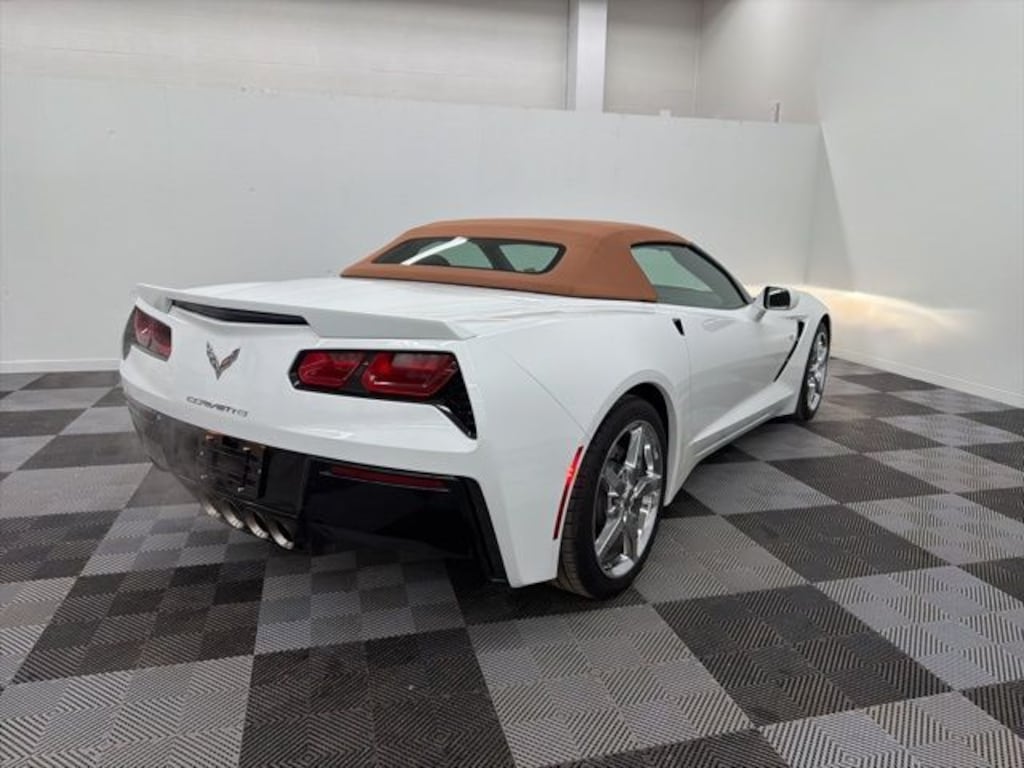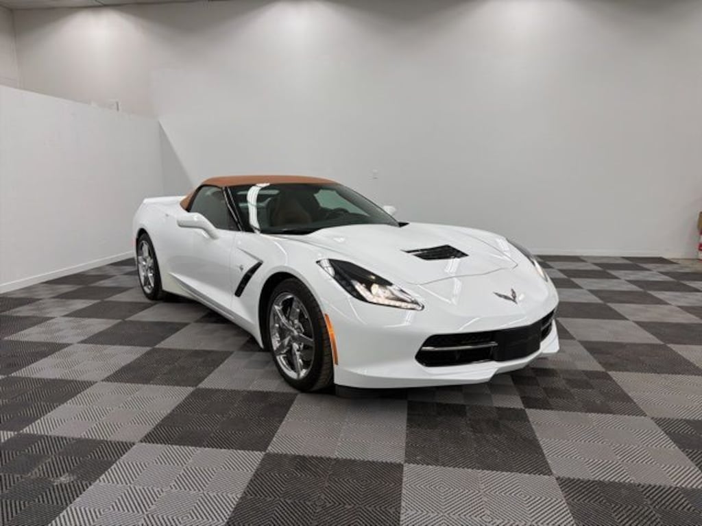 18" x 8.5" Fr & 19" x 10" Rr 5-Spoke Wheels, 18" x 8.5" Fr & 19" x 10" Rr Chrome Alum. Wheels, 2.56 Limited Slip Rear Axle Ratio, 2LT Interior Trim, 4-Wheel Disc Brakes, 8-Way Driver & Passenger Seat Adjusters, 9 Speakers, ABS brakes, Air Conditioning, Alloy wheels, AM/FM radio: SiriusXM, Auto-Dimming Inside Frameless Rearview Mirror, Automatic temperature control, Battery Protection Package, Body-Color Outside Heated Power-Adjustable Mirrors, Bose Premium 9-Speaker Audio System Feature, Bumpers: body-color, Cargo Net, Compass, Convertible roof lining, Delay-off headlights, Driver door bin, Driver vanity mirror, Dual front impact airbags, Dual front side impact airbags, Electronic Stability Control, Emergency communication system: OnStar Directions & Connections, Exterior Parking Camera Rear, Four wheel independent suspension, Front anti-roll bar, Front Bucket Seats, Front Center Armrest, Front dual zone A/C, Front reading lights, Fully automatic headlights, Glass rear window, GT Bucket Seats, Head-Up Display, Heated & Vented Driver & Passenger Seats, Heated door mirrors, High-Intensity Discharge Headlights, Illuminated entry, Leather Shift Knob, Leather steering wheel, Low tire pressure warning, Memory Package, Mulan Perforated Leather Seating Surfaces, Navigation System, Occupant sensing airbag, Outside temperature display, Panic alarm, Passenger door bin, Passenger vanity mirror, Performance Exhaust, Power convertible roof, Power door mirrors, Power driver seat, Power Lumbar/Bolster Seat Adjusters, Power passenger seat, Power steering, Power windows, Preferred Equipment Group 2LT, Premium audio system: Chevrolet MyLink, Radio data system, Radio: Chevrolet MyLink AM/FM Stereo, Rear anti-roll bar, Rear window defroster, Remote keyless entry, Remote Vehicle Starter System, SiriusXM Satellite Radio, Speed control, Speed-sensing steering, Spoiler, Sport steering wheel, Steering wheel mounted audio controls, Tachometer, Telescoping steering wheel, Theft Deterrent System, Tilt steering wheel, Traction control, Trip computer, Universal Home Remote, Variably intermittent wipers, Voltmeter. 2014 Chevrolet Corvette Stingray